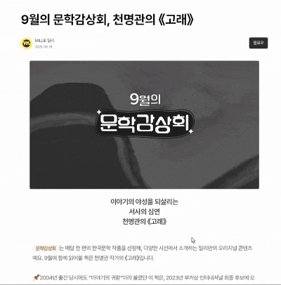 밀리의 서재 문학감상회 - 천명관의 《고래》 텍스트